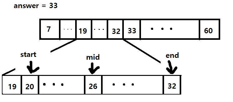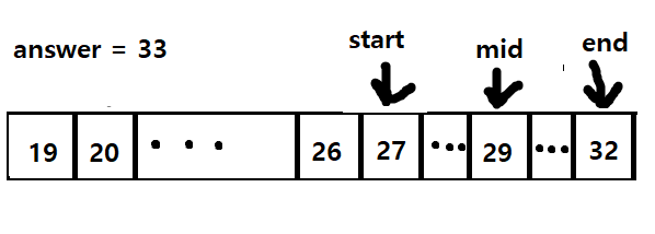 end값은 32가 되고 answer는 33이 저장된다.