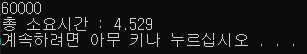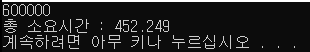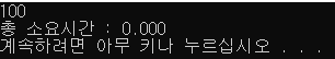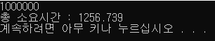 printf("총 소요시간 : %.3f\n", (float)(end - start) / CLOCKS_PER_SEC);
