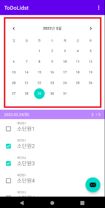 본인은 달력 기능을 위해 안드로이드에서 제공해주는 calendarview를 사용했다.