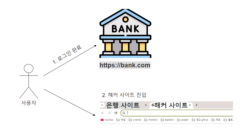 공격자가 사용자의 브라우저가 특정 사이트에 대해 가진